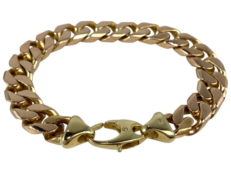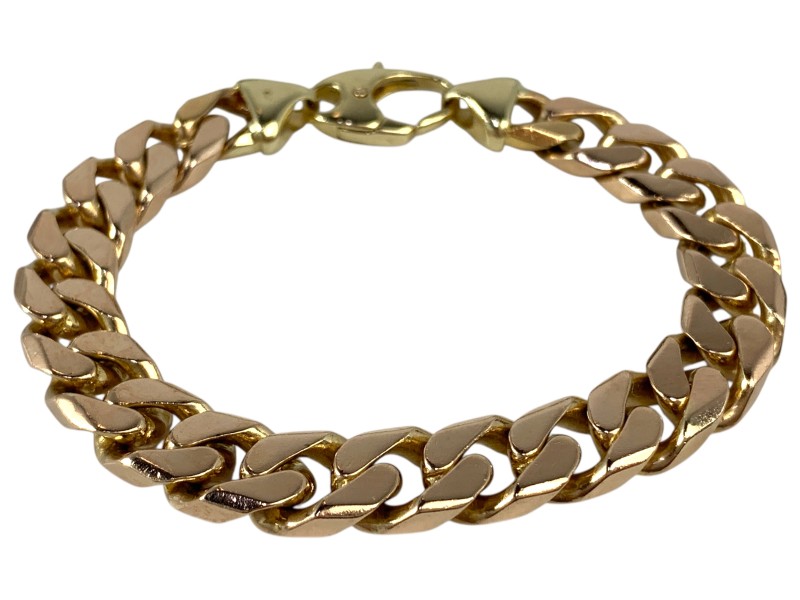 Description: 9CT YELLOW GOLD GENTS CURB BRACELET - SOLID
