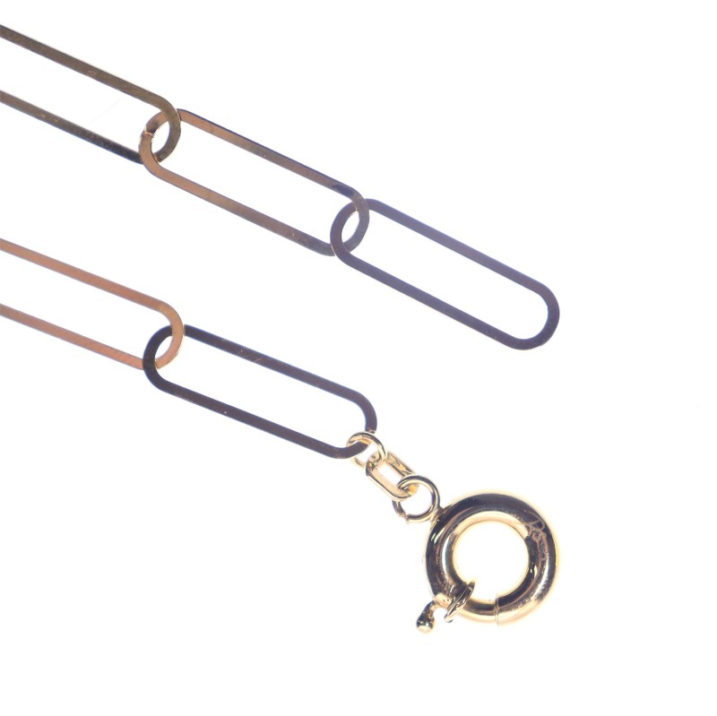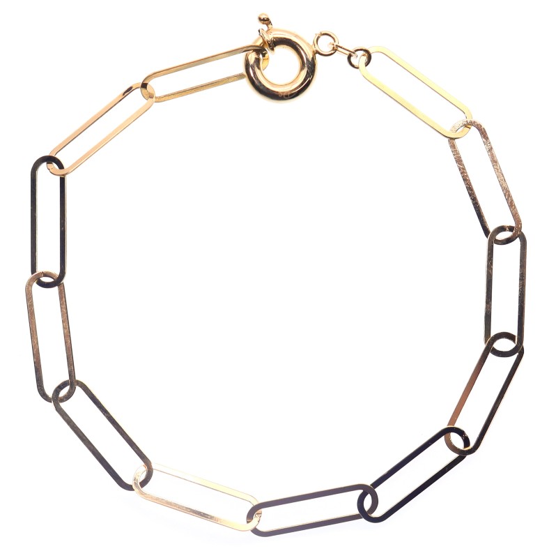 Crafted in striking 18 karat yellow gold, this ladies' bracelet features a series of flat oval links connected by a secure bolt ring clasp. The bracelet measures 19 cm in length and weighs a substantial 2.57 grams. Beautifully hallmarked as 750 gold, this contemporary piece is sure to elevate any accessory ensemble. All sizes and measurements are approximate.