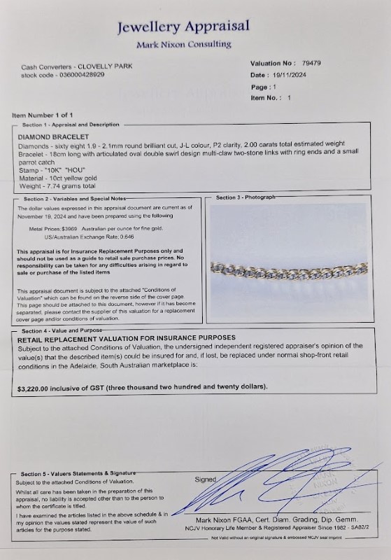 Make / Model: 10 ct Yellow Gold Diamond Tennis Bracelet