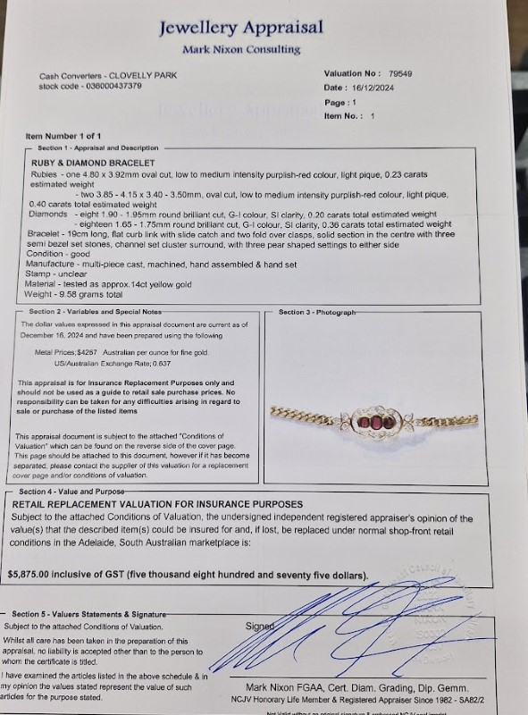 Make / Model: 14ct Yellow Gold Ruby & Diamond Bracelet