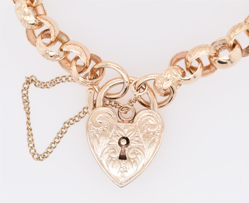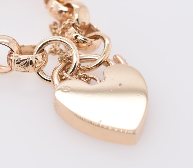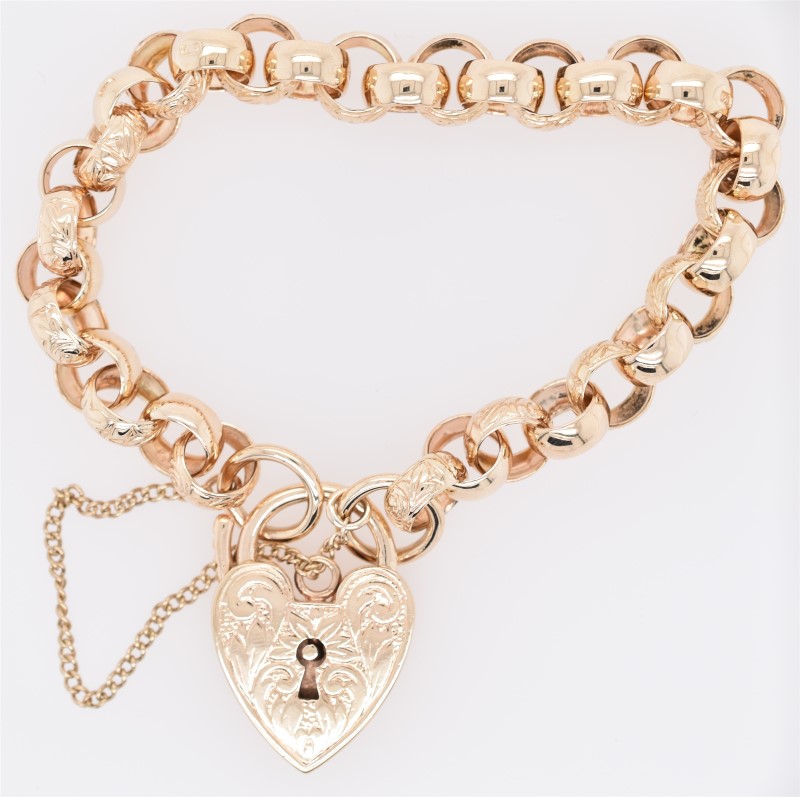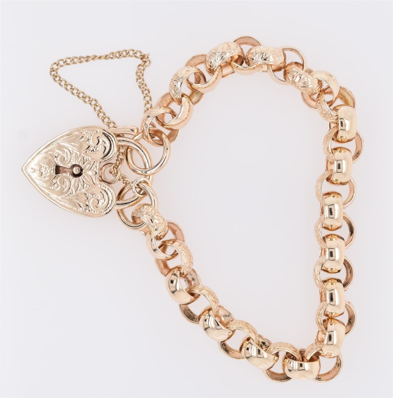 9ct Yellow Gold Day and Night Belcher Bracelet with Heart Padlock Clasp