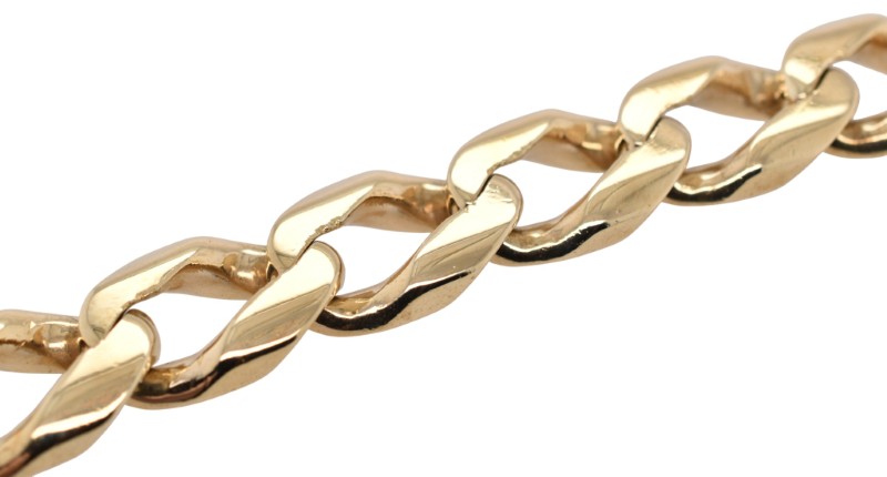Solid 9ct Yellow Gold Wide Filed Flat Curb Link Bracelet