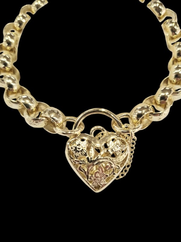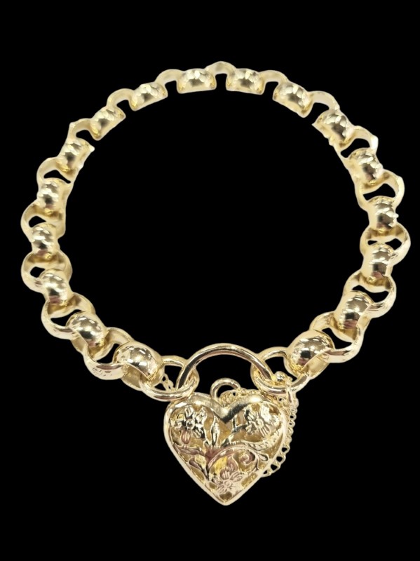 This elegant 9 Karat yellow gold bracelet features a classic design that will effortlessly complement any outfit. The substantial 28.85 gram weight and 29 cm length create a statement piece perfect for everyday wear. Crafted from solid yellow gold, this ladies bracelet is a timeless accessory that will retain its beauty for years to come. All sizes and measurements are approximate.
