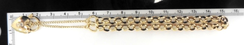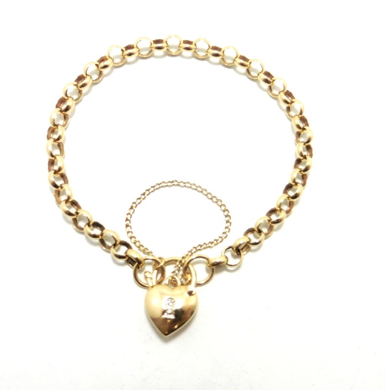This elegant 9ct yellow gold ladies' bracelet features a classic link design. Crafted from durable yellow gold, the bracelet measures 15cm in length and weighs a substantial 9.83g. Adorning the bracelet is a single clear stone, adding a touch of subtle sparkle. With its timeless style and quality construction, this 9ct gold bracelet is a versatile accessory suitable for any occasion. All sizes and measurements are approximate.