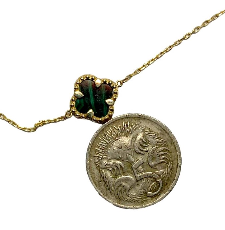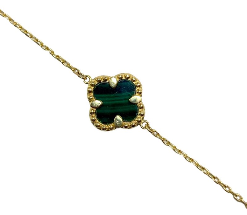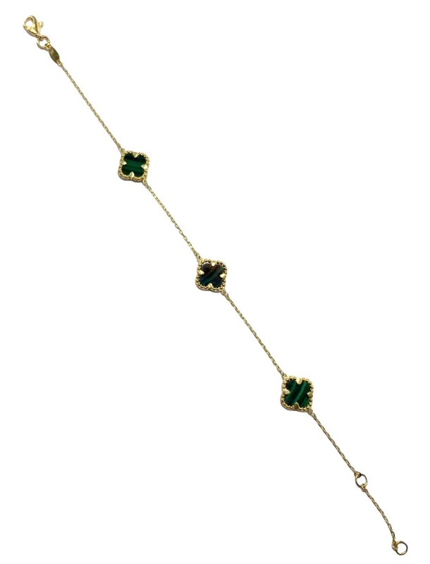 Get the Van Cleef look without the Van Cleef price with this 9ct yellow gold bracelet with three green enamel Van Cleef-style clover motifs.