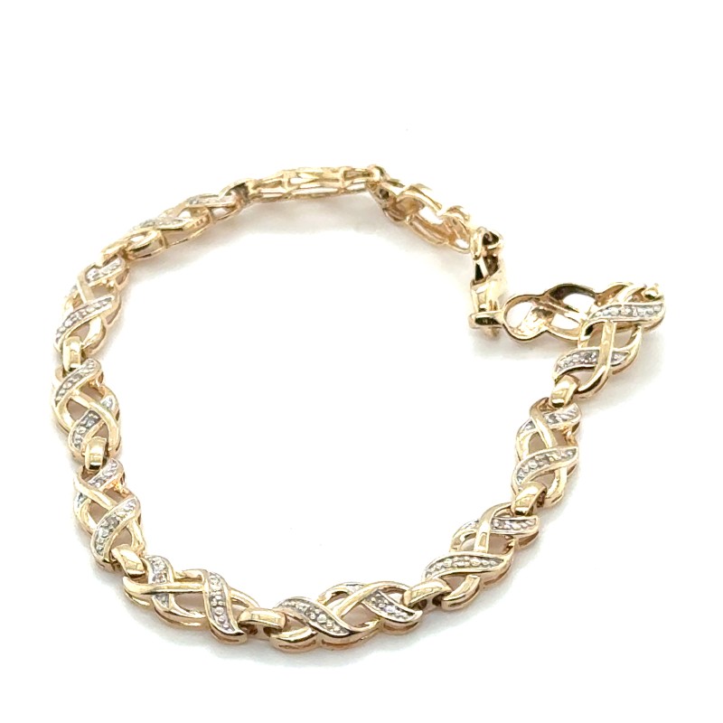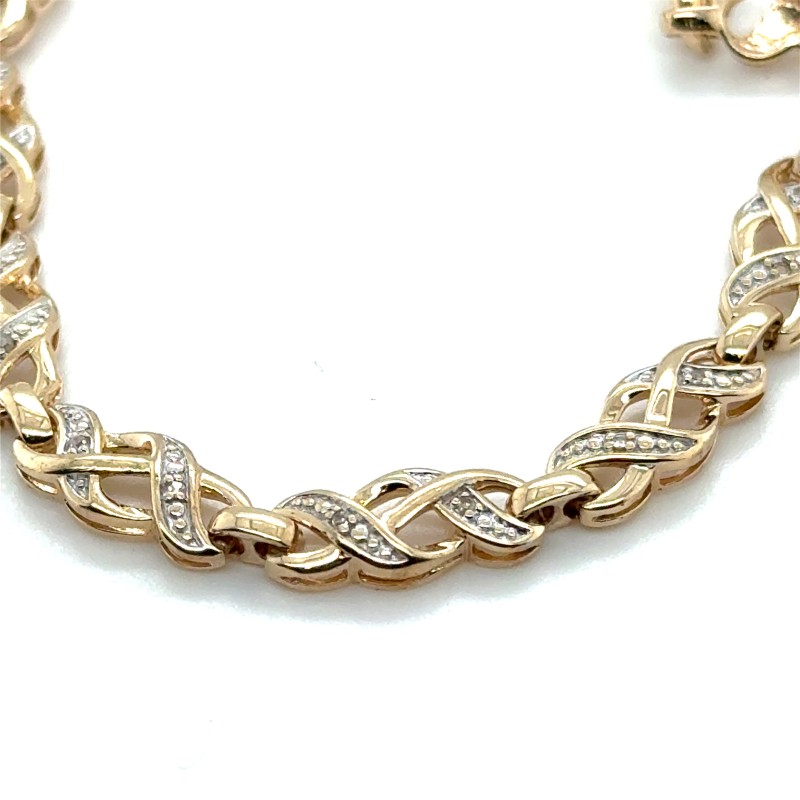 Yellow Gold 18.5cm Long Diamond Set Infinity Link Bracelet