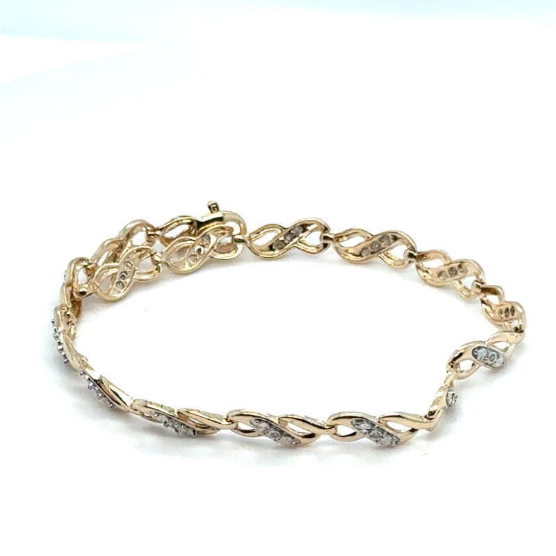 Yellow Gold 19cm Long Diamonds Set Figure 8 Links