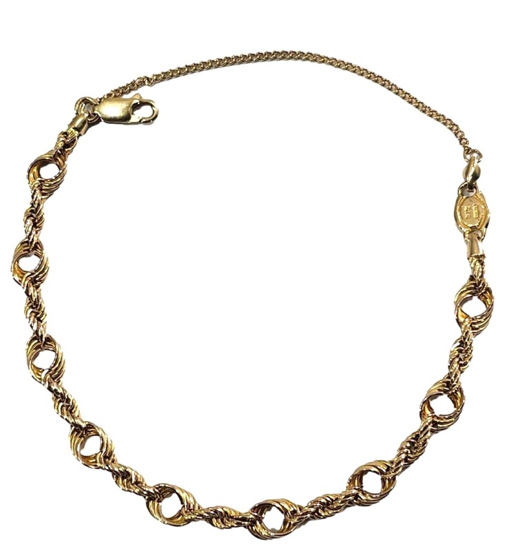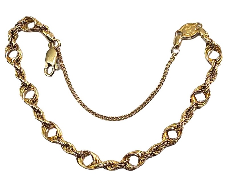 This stunning 9 Karat yellow and white gold bracelet is a timeless accessory. Measuring 27cm in length and weighing 6 grams, this versatile piece can be dressed up or down to complement any outfit. The combination of yellow and white gold creates a striking visual contrast, adding depth and elegance to the design. This bracelet's classic sub-type ensures it will seamlessly integrate into your jewellery collection. All sizes and measurements are approximate.