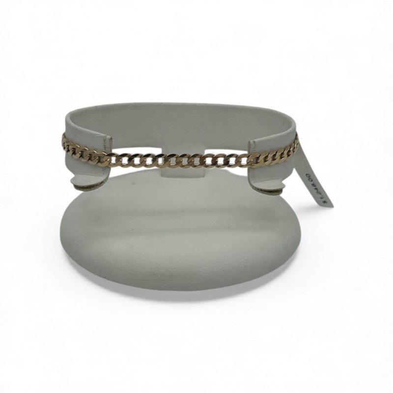 This 9 karat yellow gold bracelet features a classic link design perfect for everyday wear. Crafted from durable yellow gold, it measures 18cm in length and weighs a substantial 6.24g. The bracelet's uniform width of 0.5cm creates a streamlined, unisex look suitable for all. With its .375 hallmark, this bracelet is a reliable choice for those seeking a high-quality, long-lasting gold accessory. All sizes and measurements are approximate.