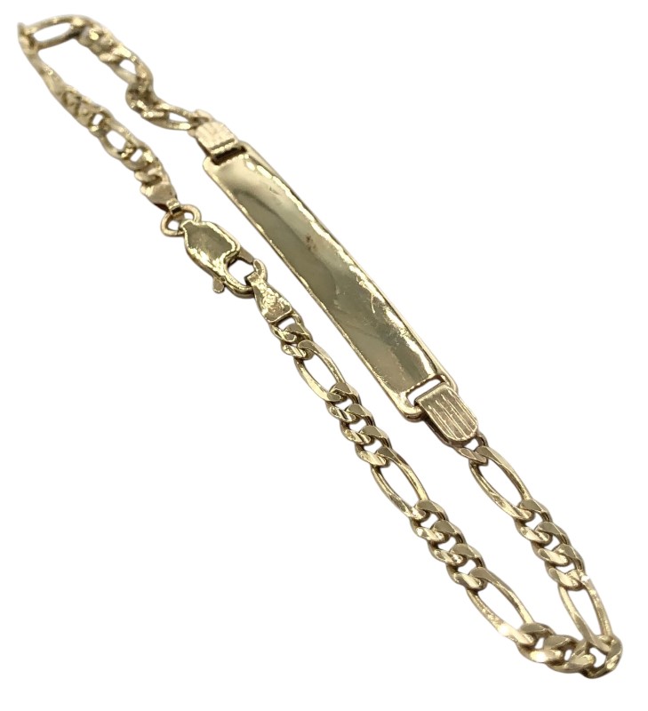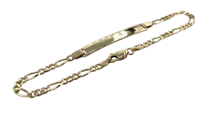 9ct Yellow Gold Figaro Link ID Bracelet,