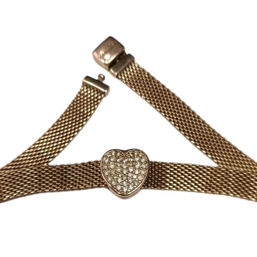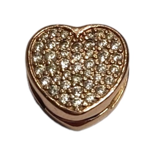 This bracelet comes with a Pandora Pave Heart Clip charm. It has a slight kink in the middle.