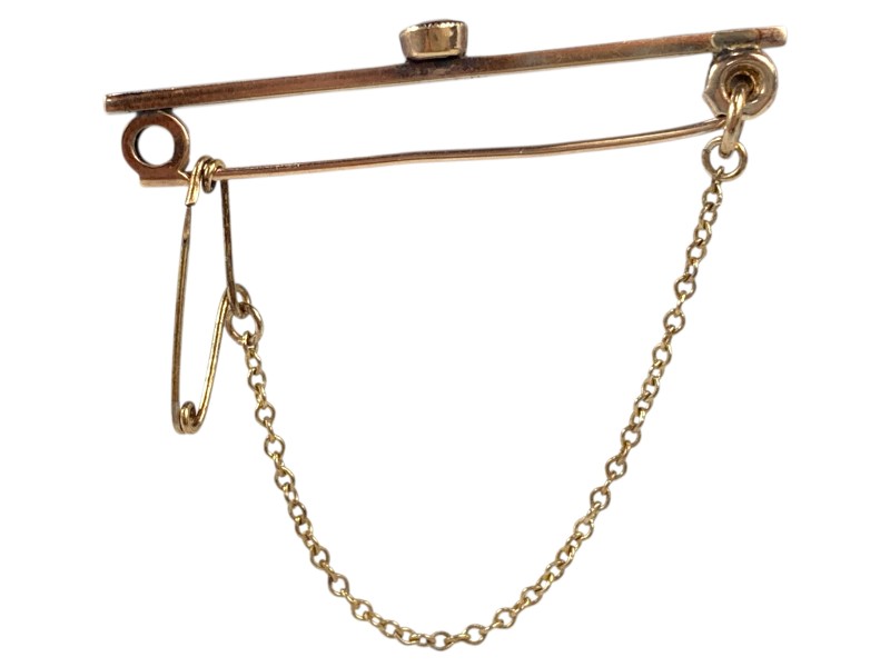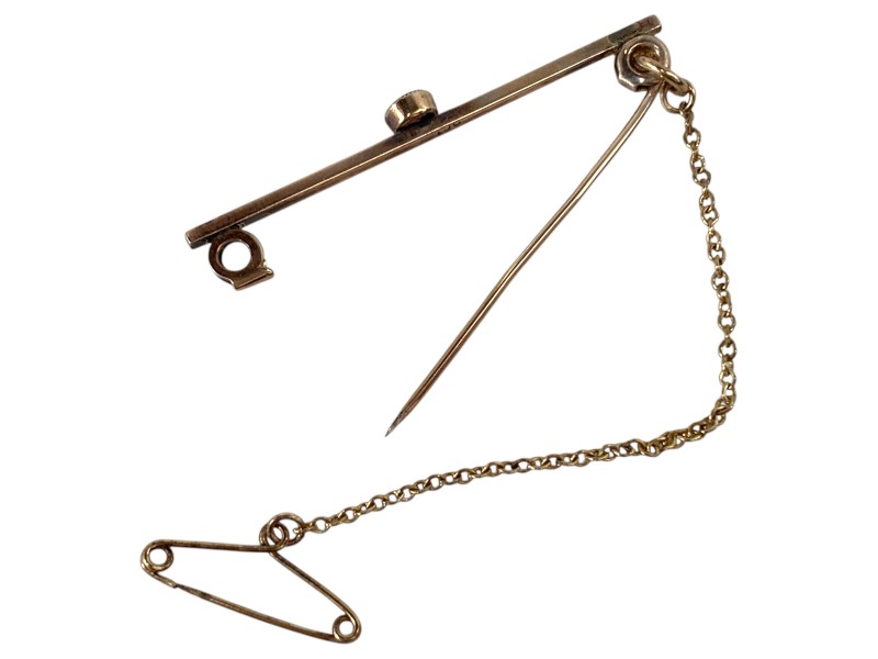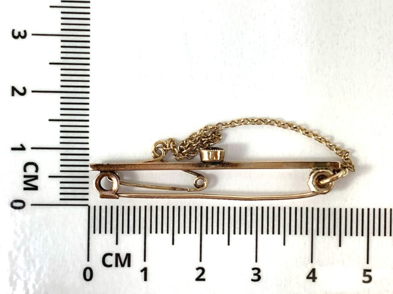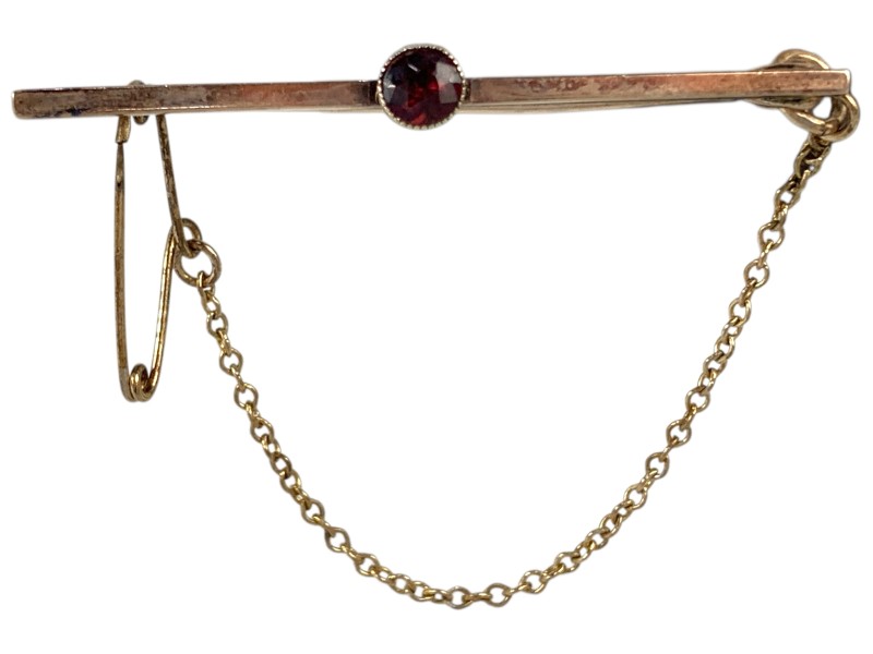 Description: 9CT YELLOW BROOCH WITH RED STONE