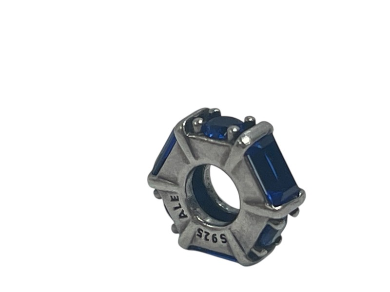 This 925 silver Pandora charm features a classic bead shape with 6 dark blue stones. Stamped with the 925 hallmark, this charm weighs 1.5g and is engraved with 'S 925 ALE'. A versatile addition to any Pandora bracelet or necklace, this silver charm offers a timeless and sophisticated look. All sizes and measurements are approximate.