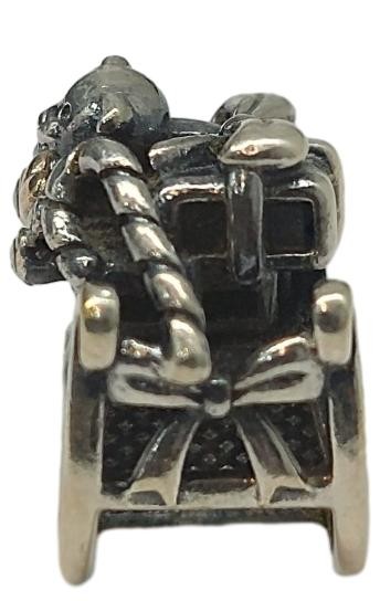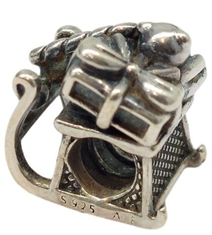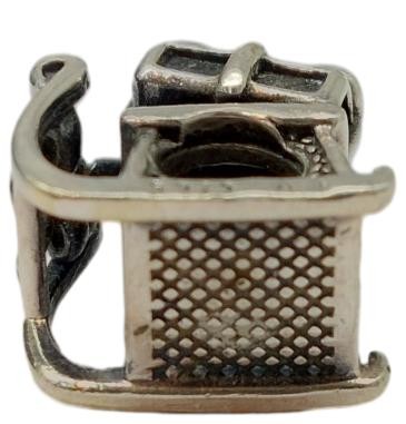 Crafted in sterling silver, this charming Santa's Sleigh charm by Pandora makes a delightful addition to any jewellery collection. The 925 hallmarked silver piece features intricate details that capture the whimsical spirit of the holiday season. Weighing a modest 4.13 grams, this versatile charm can be easily incorporated into a bracelet or necklace to elevate your festive style. All sizes and measurements are approximate.
