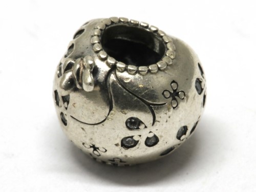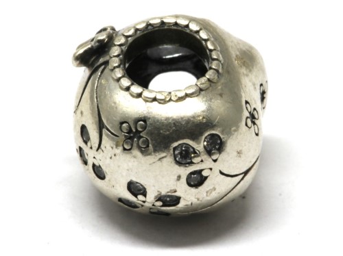 Silver Sparkling Skull Halloween Charm with Clear Zirconia