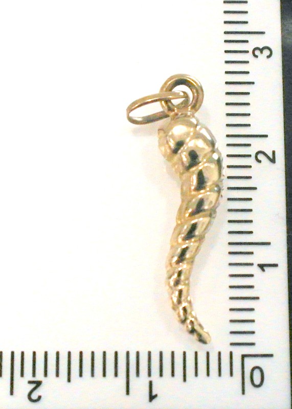This 9 karat yellow gold charm features a striking bull horn pendant. Measuring 2.8 cm in length and 0.9 cm in width, this dainty piece weighs a delicate 0.61 grams. The 9 karat engraving adds a touch of elegance to this lovely ladies' charm. All sizes and measurements are approximate.