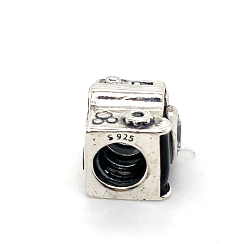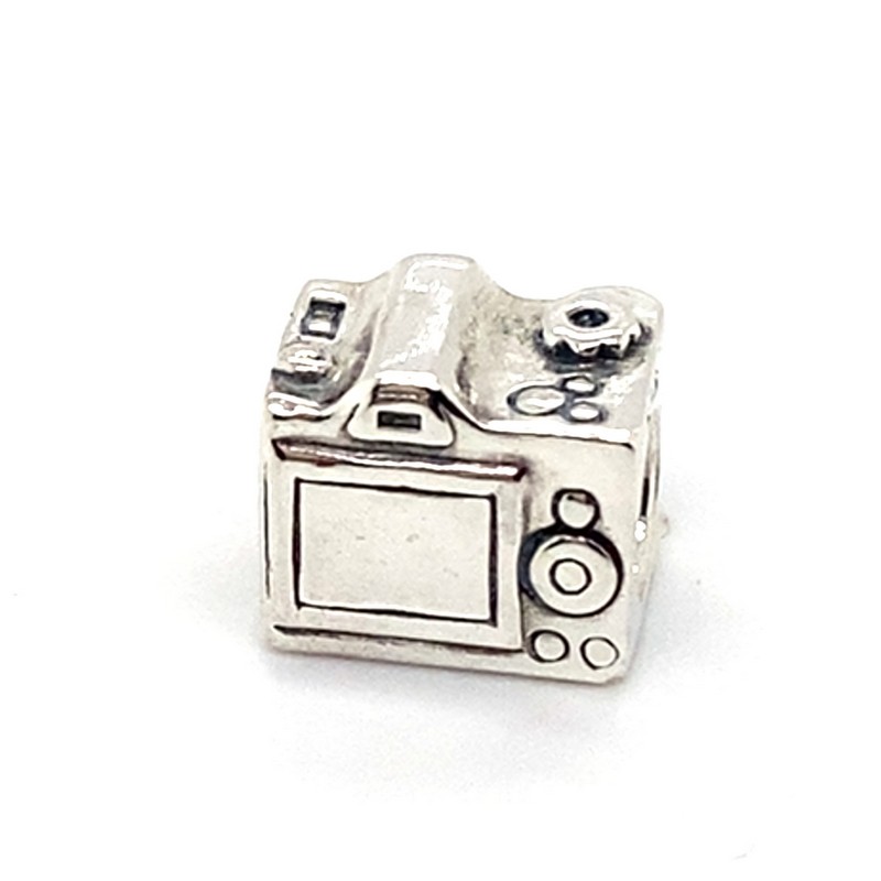 Crafted in 925 sterling silver, this Pandora 791709 Camera charm features a bead-shaped design in a distinctive camera silhouette. Measuring 3.86 grams, this versatile charm pendant is perfect for customising bracelets, necklaces, or other jewellery pieces. With its engraved S925 ALE hallmark, this charm offers a timeless, minimalist style to complement any look. All sizes and measurements are approximate.