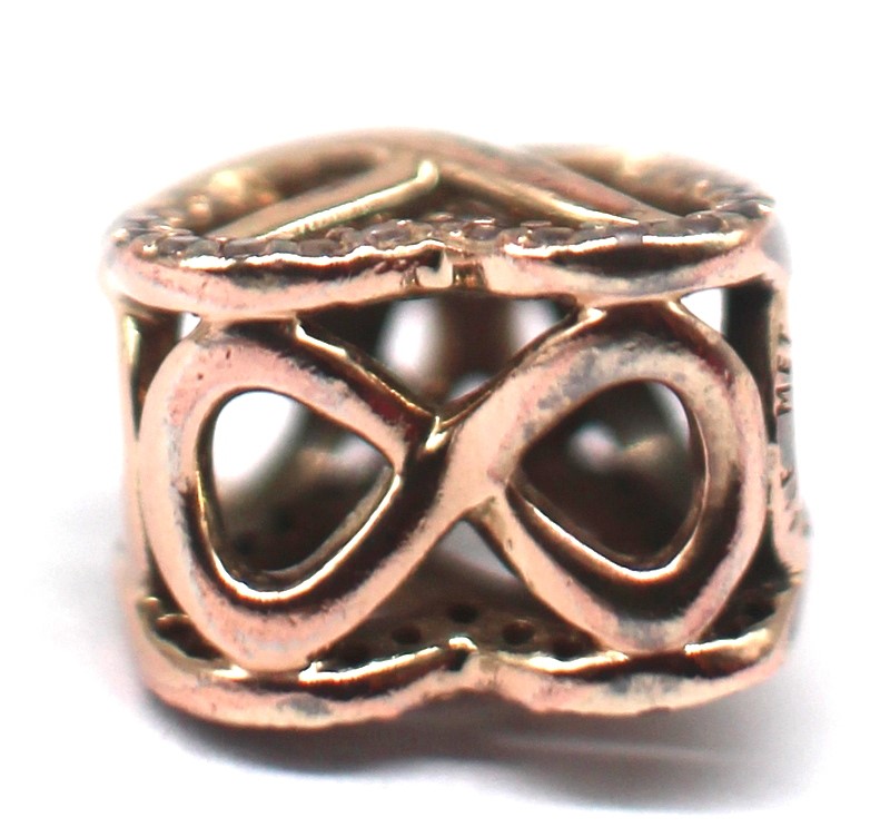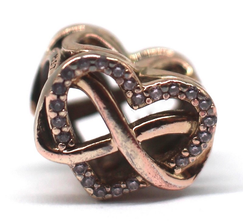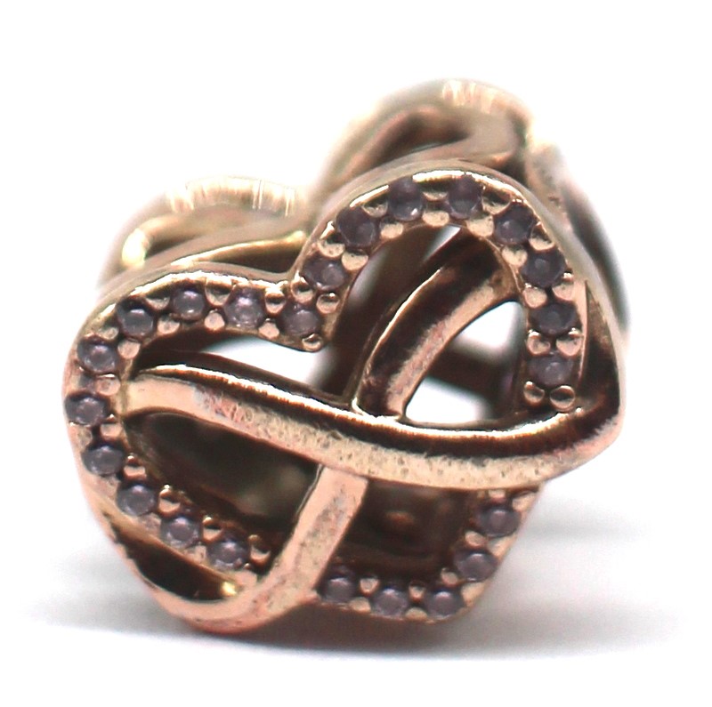 Retired Pandora 14K Rose Gold-Plated Family Infinity Heart Charm with Pink Zirconia