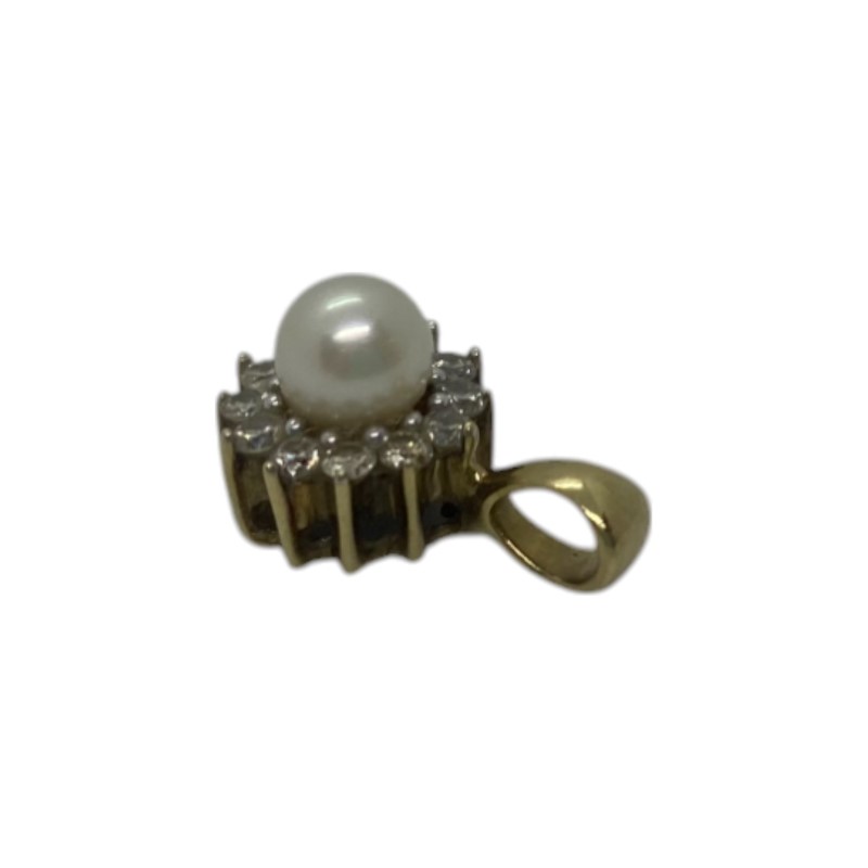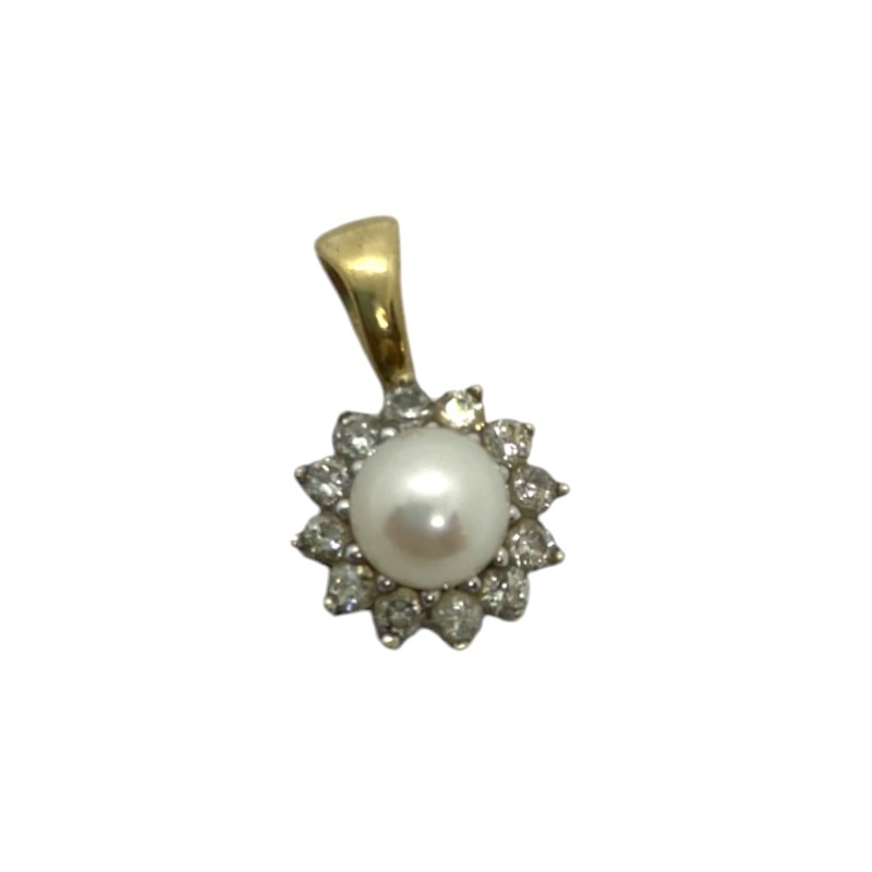 9ct Gold Pearl Pendant with Halo of Diamonds