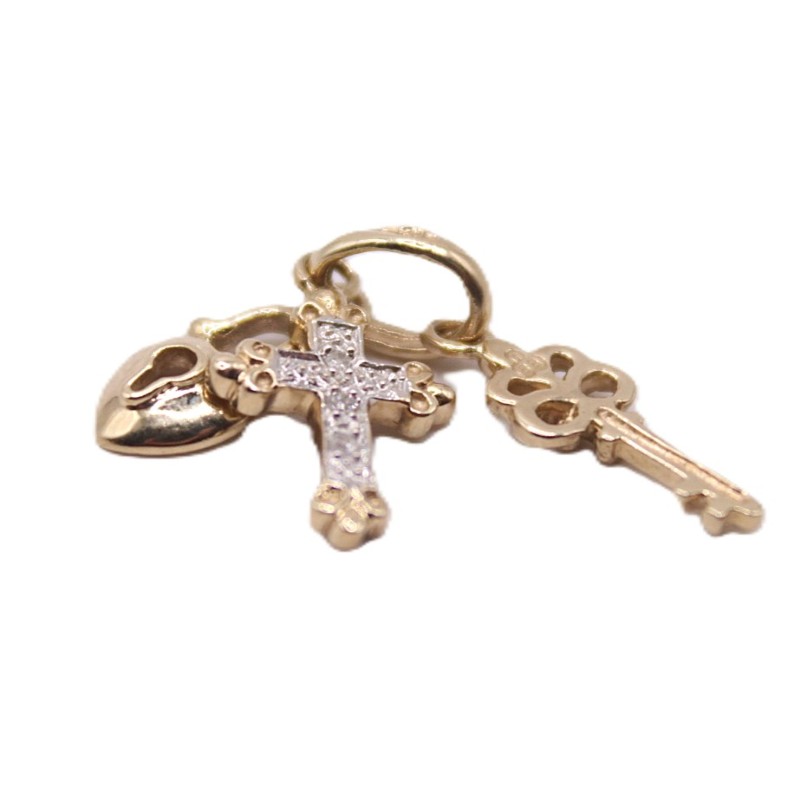 Make / Model: Dangling Trio Key Heart Cross Pendant With Single Cut Diamonds J-K I1