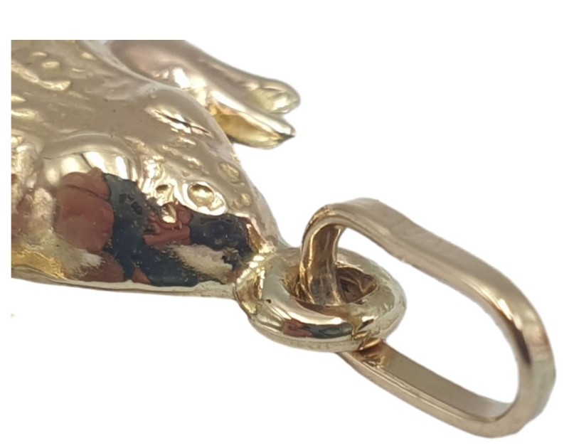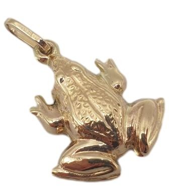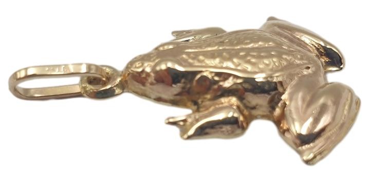 This striking 9ct yellow gold frog pendant is a unique and eye-catching accessory. Crafted from high-quality yellow gold, the pendant features a detailed frog design with a hallmark of .375. Measuring 2.6cm in length and 1.8cm in width, this versatile pendant weighs a substantial 1.51g, making it a durable and substantial piece. The frog pendant is suitable for all genders, making it a great choice for a range of personal or gift-giving occasions. All sizes and measurements are approximate.