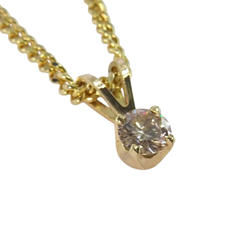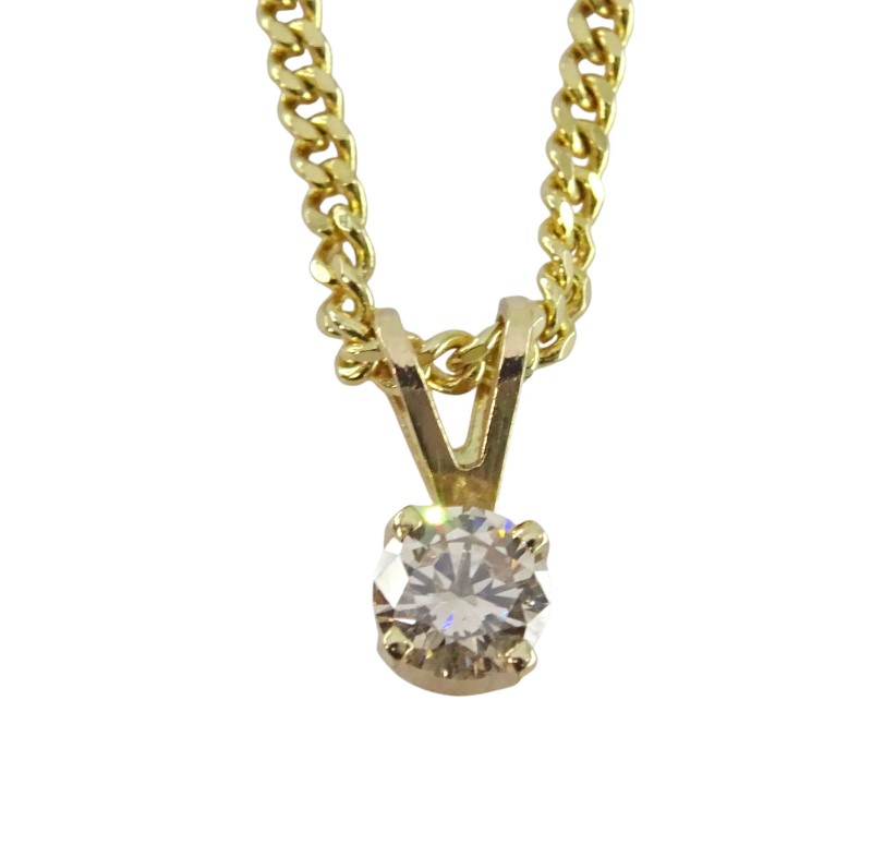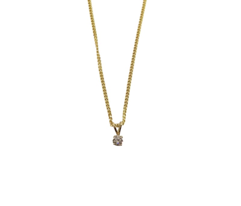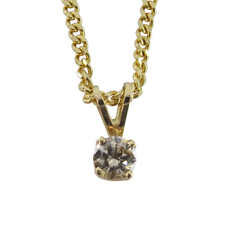 This 9ct yellow gold pendant features a solitaire diamond of 0.30 carats in a round brilliant cut and SI1 clarity. The diamond is held in a claw setting and suspended from a curb chain. With a total diamond weight of 0.3, this ladies' pendant is a classic and sophisticated choice. The 9K engraved hallmark guarantees the quality of the yellow gold. This versatile piece can be worn for both everyday and special occasions, showcasing the natural beauty of the diamond.