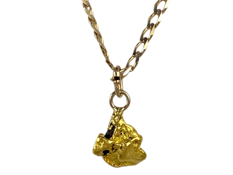 Description: 9CT YELLOW GOLD CURB CHAIN WITH 22CT YELLOW GOLD NUGGET PENDANT