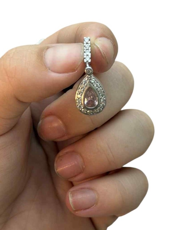 Teardrop Shaped Pendant With A Large Pink Stone & Czs Surrounding