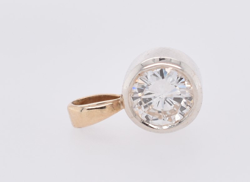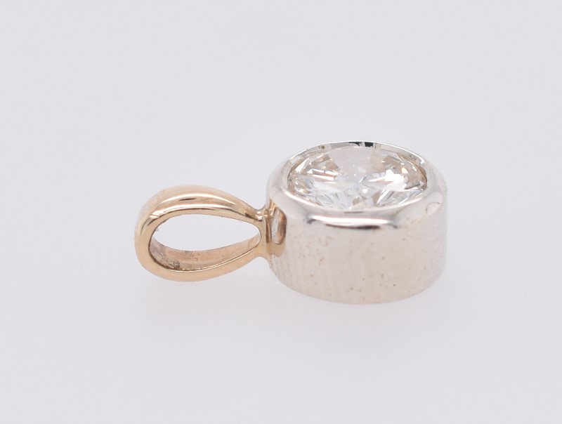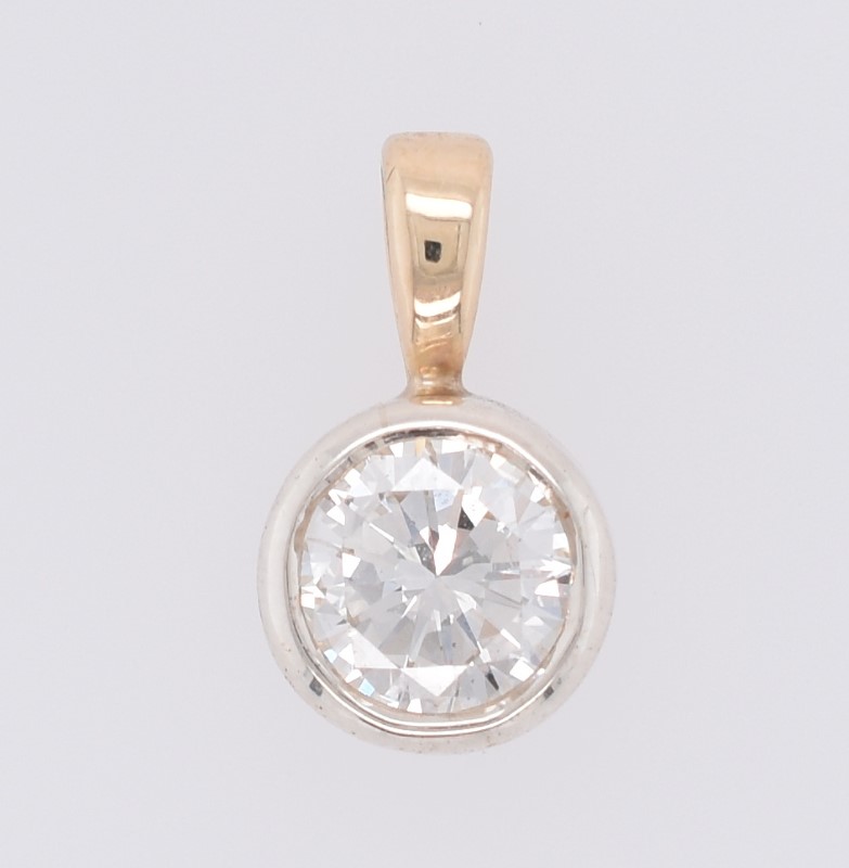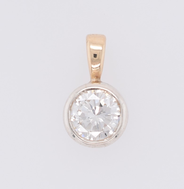 9ct Yellow & White Gold Round Brilliant Cut Bezel Set Diamond Pendant