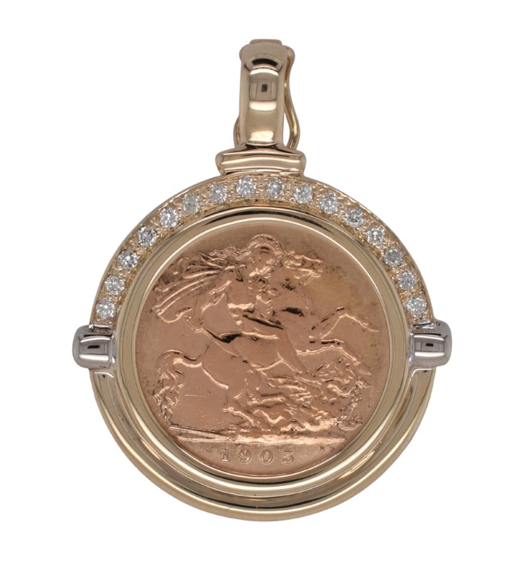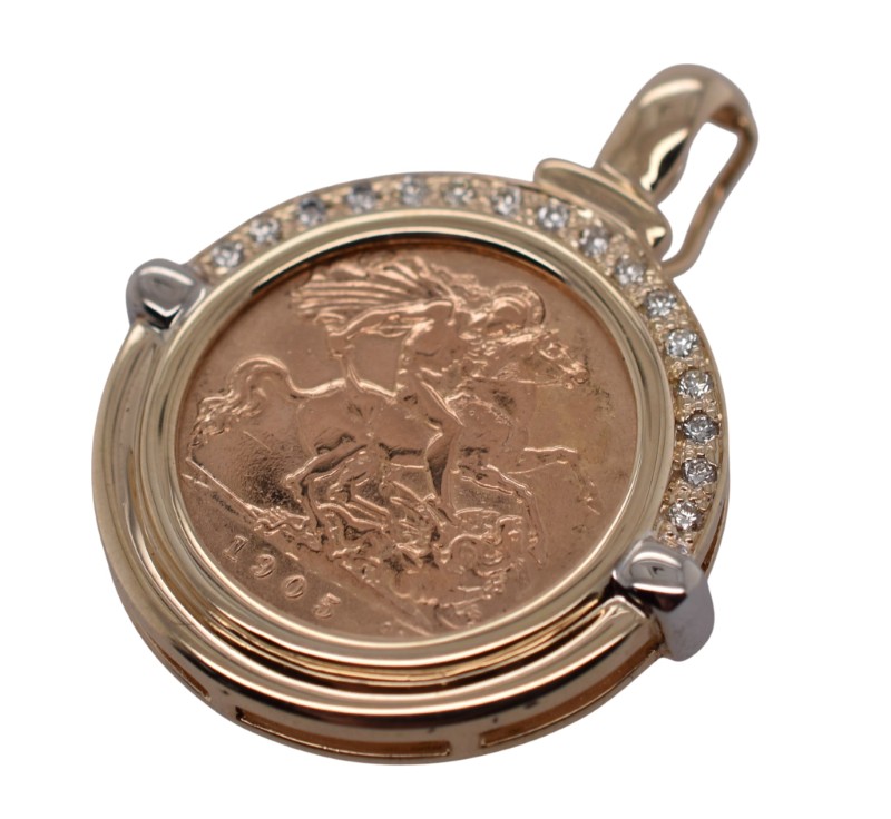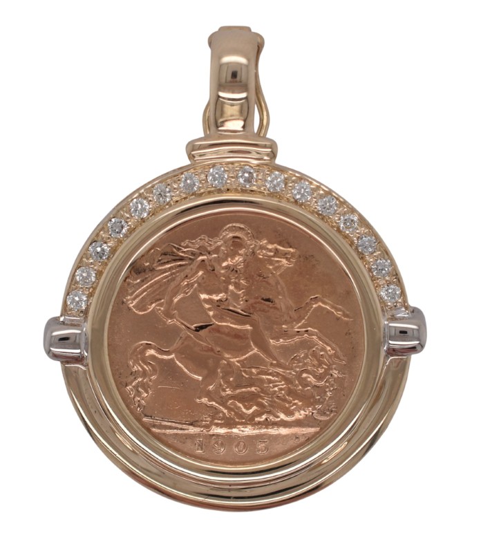 22ct Half Sovereign with 9ct Diamond Pendant Enhancer