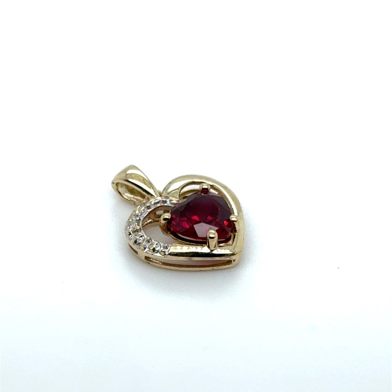 Diamond and Synthetic Ruby set in the heart pendant