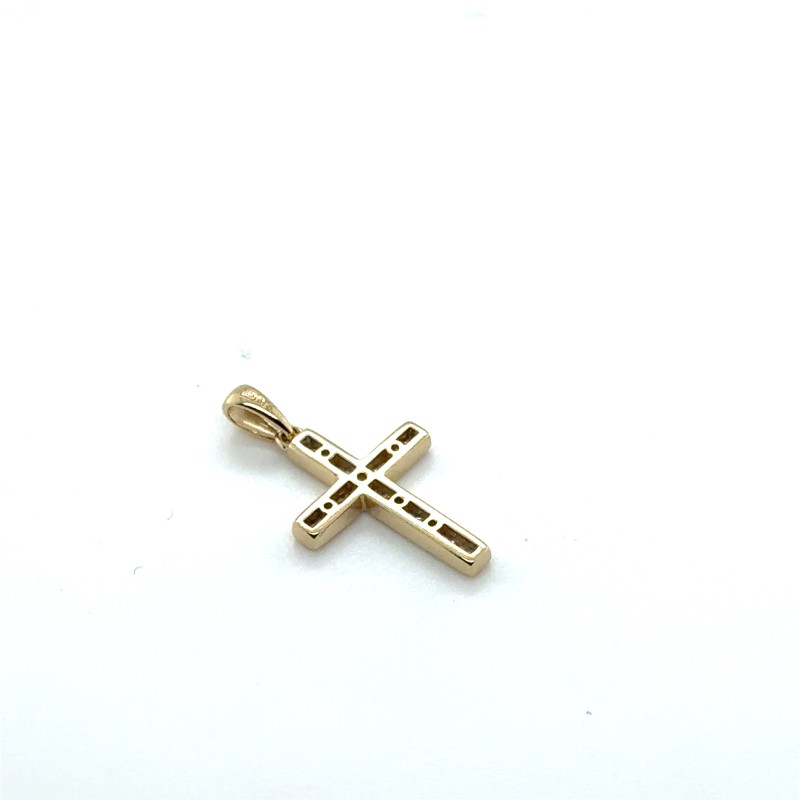 Yellow Gold Diamonds channel set in the cross pendant, 0.15ct TDW, JK, P1/P2