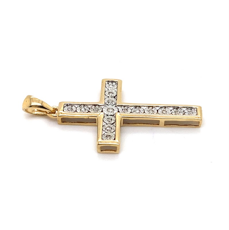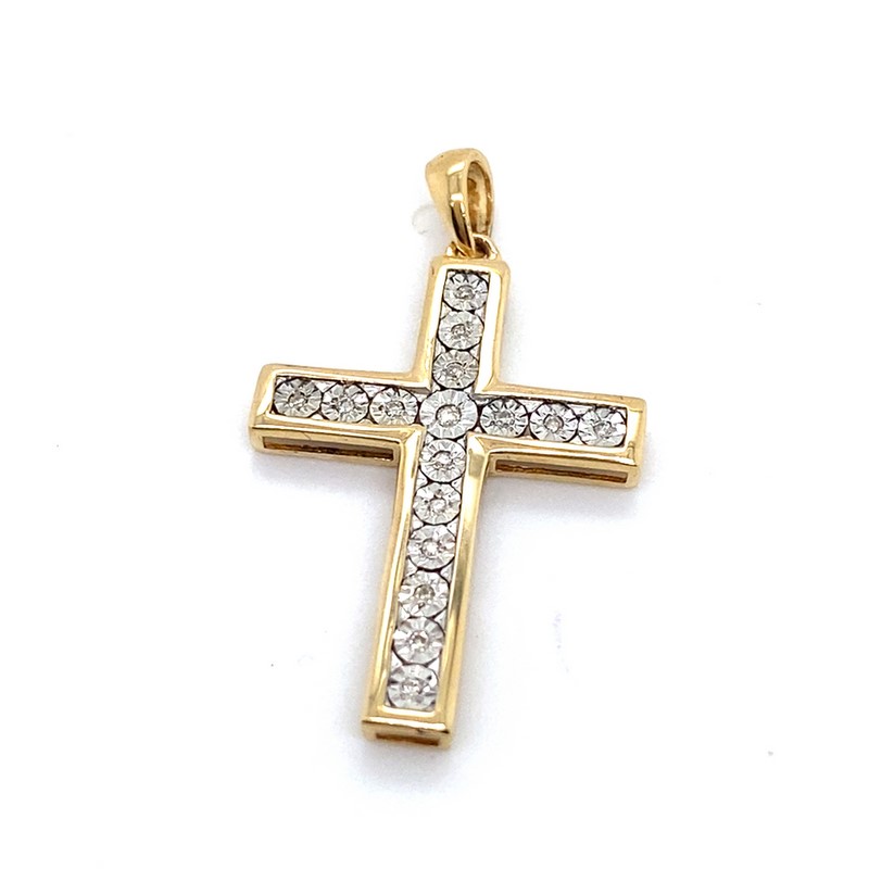 9CT YELLOW & WHITE GOLD DIAMOND CROSS PENDANT