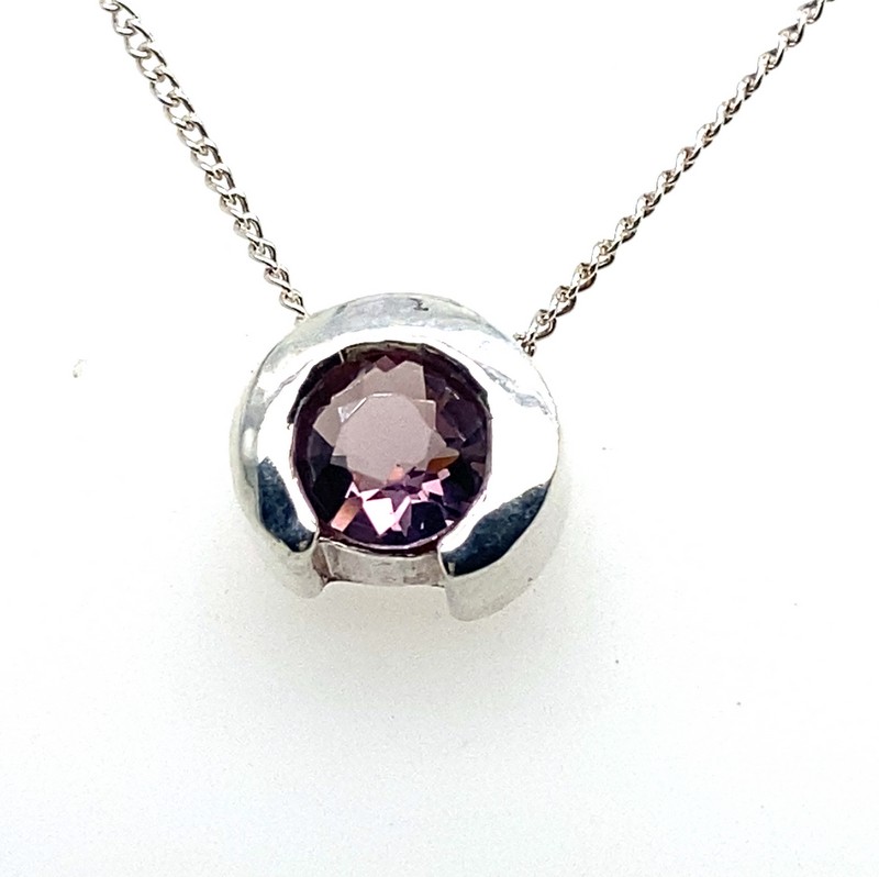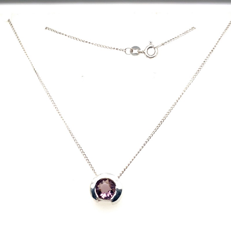 Amethyst Set In The Pendant On The 45cm Long Curb Link Chain