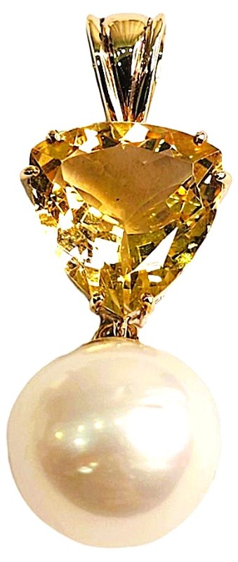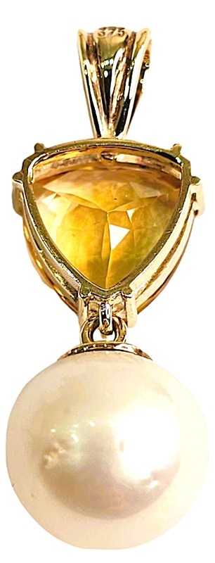 9ct Trilliant Faceted Citrine And South Sea Cultured Pearl Yellow Gold Pendant 5.35G Pendant