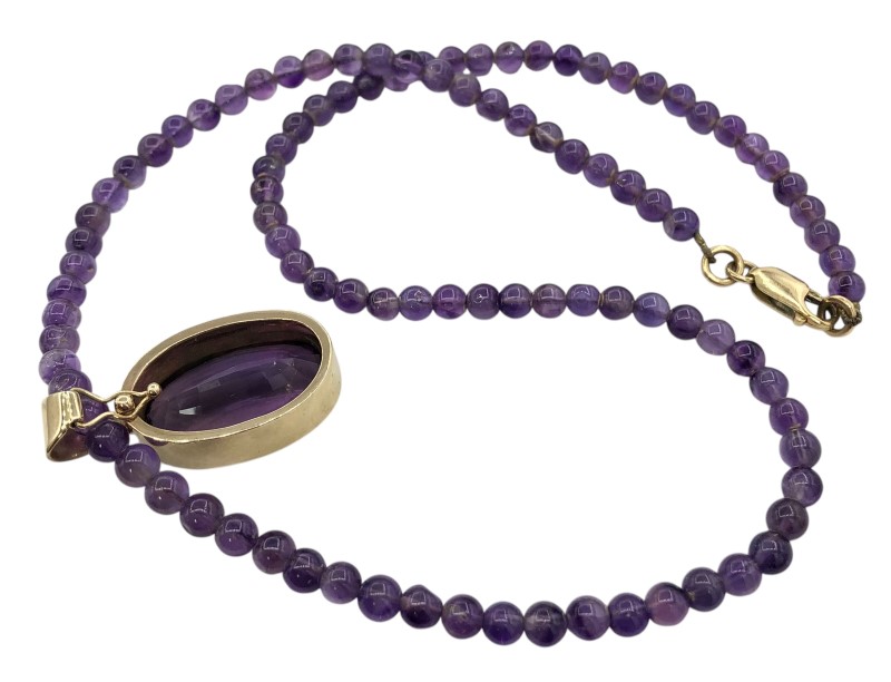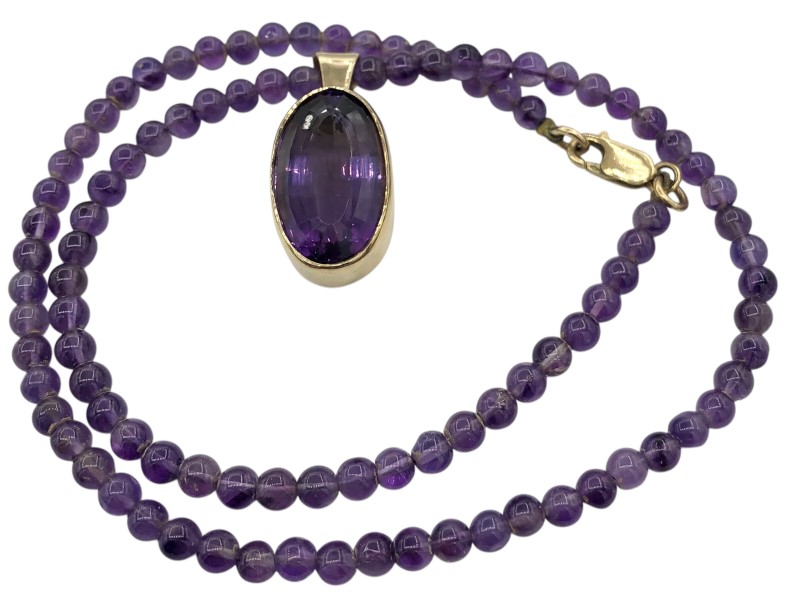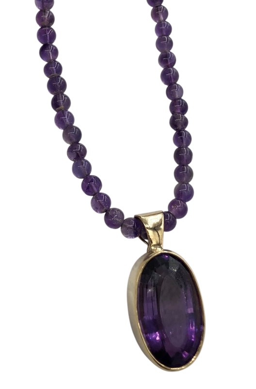 Amethyst Necklace with 9ct Gold Amethyst Pendant,