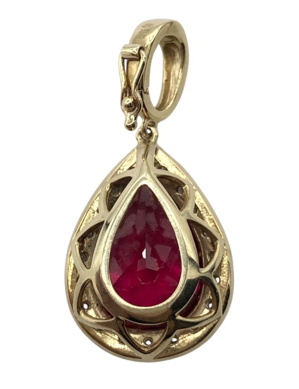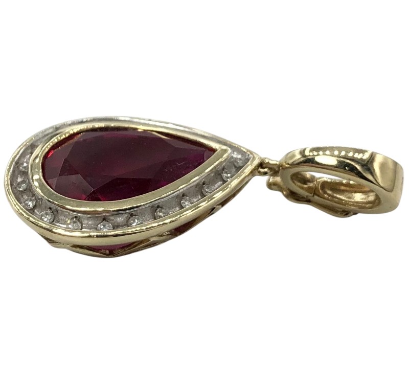 It has one large created Red Ruby Stone, Pear Cut, Measuring 1.2cm
