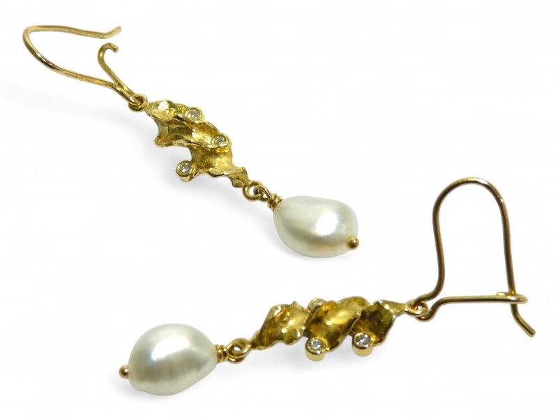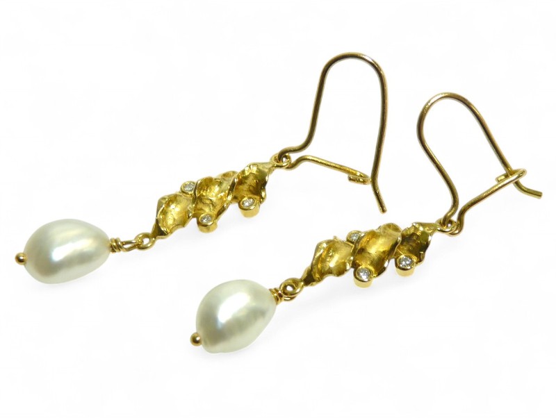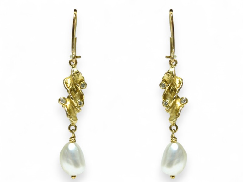 18ct Yellow Gold, Pearl & Diamond Drop Earrings