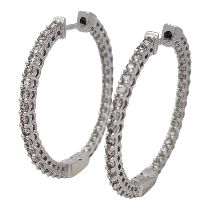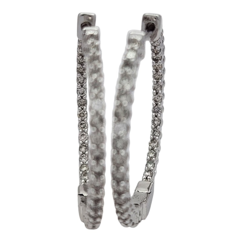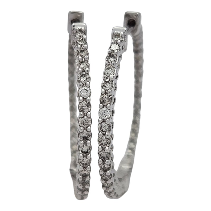 Elegant 18ct white gold earrings with a multi-set diamond design. Crafted by renowned jewellery brand Michael Hill, these pierced drop earrings feature a total diamond weight of 1 carat, showcasing the sparkle and brilliance of these precious stones. The white gold material provides a classic and sophisticated look, complementing the delicate drop silhouette. These versatile earrings can be worn for any occasion, adding a touch of refinement to your style.