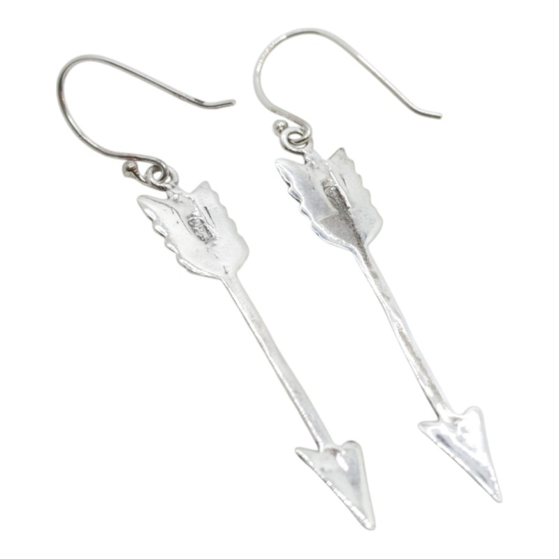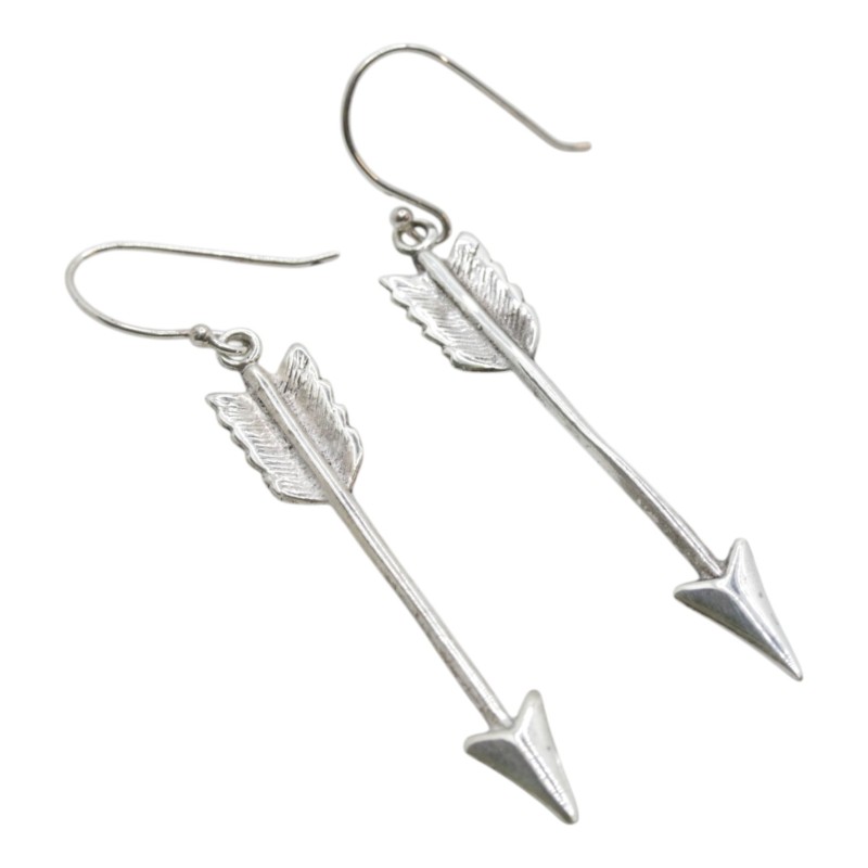 Elegant 925 silver arrow drop earrings. Crafted from sterling silver, these sleek earrings feature a simple arrow shape design. Hallmarked 925, they weigh a lightweight 2.28g. Perfect for everyday wear, the pierced earring style secures comfortably. All sizes and measurements are approximate.