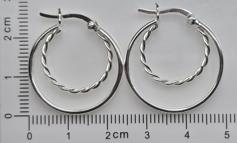 These stylish sterling silver double hoop earrings offer a classic and versatile look. Crafted from 925 hallmarked silver, they feature a simple hoop design that will complement any outfit. With a weight of 3.46 grams, these earrings are a lightweight and comfortable option for everyday wear. The 925 engraving on the earrings provides an assurance of their quality and authenticity. All sizes and measurements are approximate.