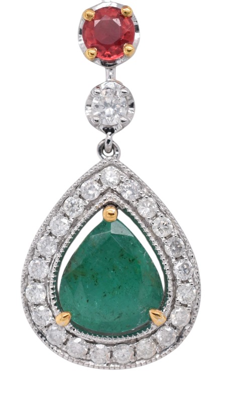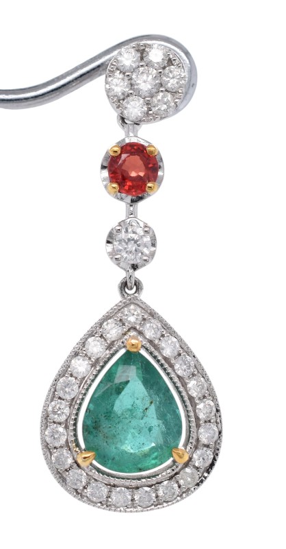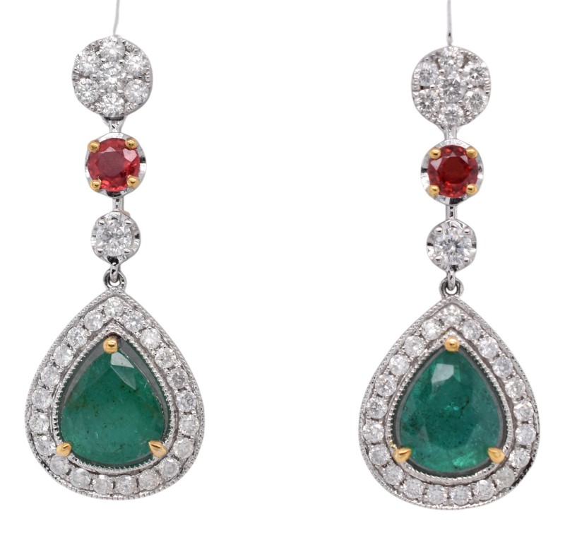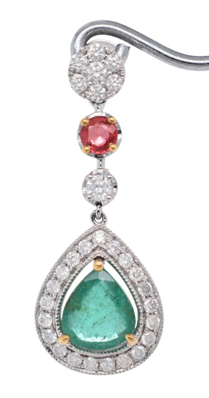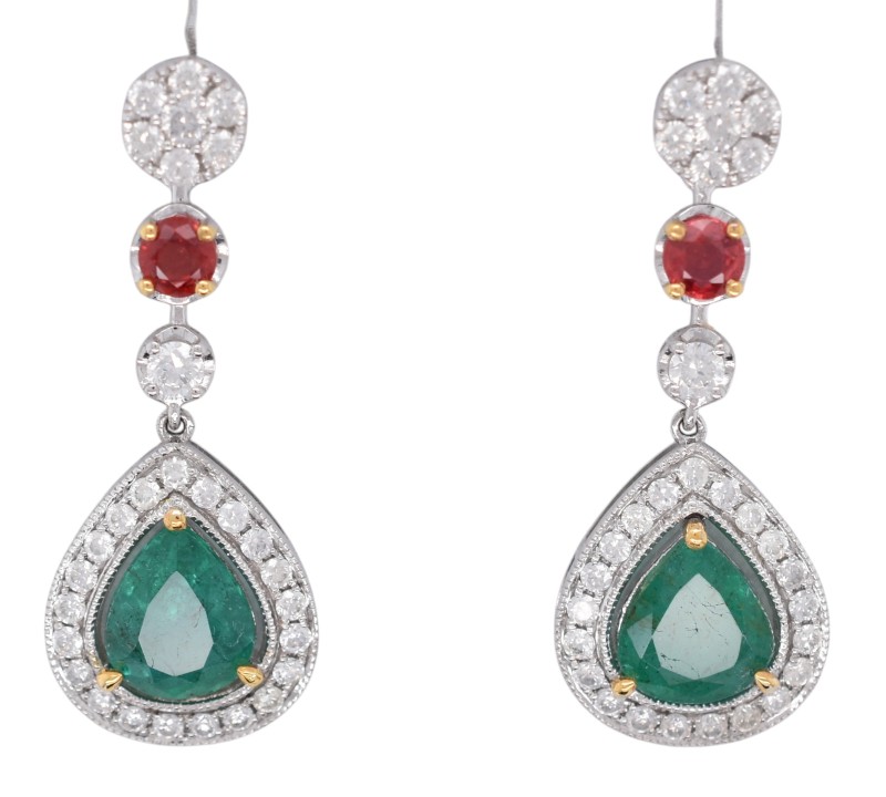 Platinum Emerald, Sapphire & Diamond Drop Earrings