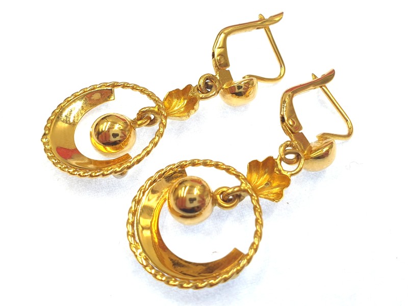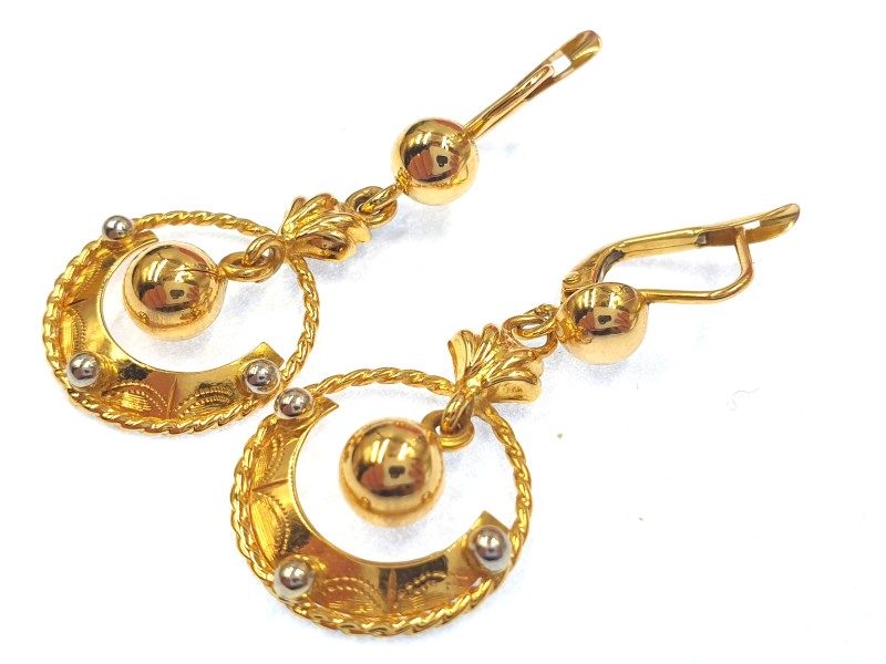 These 18 karat yellow gold pierced earrings feature a hallmark of .750. With a total weight of 5.28 grams, these earrings showcase the warmth and radiance of yellow gold. The engraved details add a unique personal touch. Crafted to complement any look, these classic yellow gold earrings are a timeless accessory. All sizes and measurements are approximate.