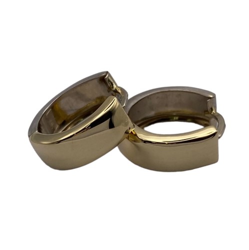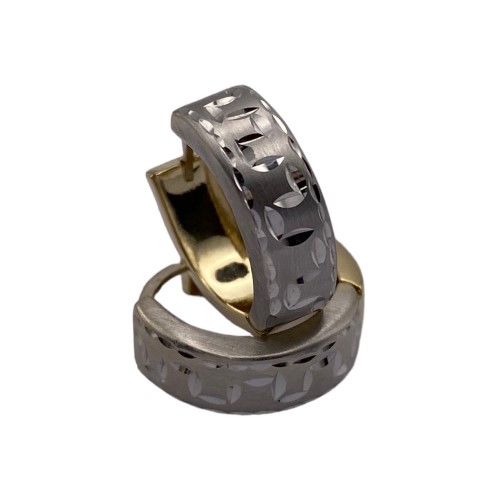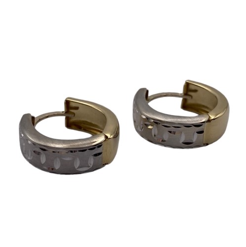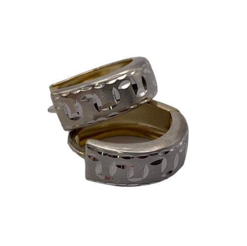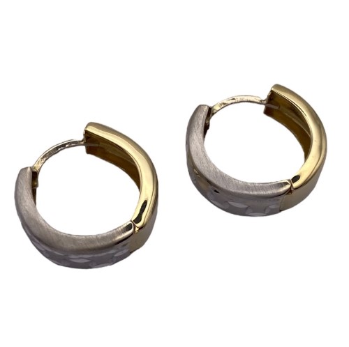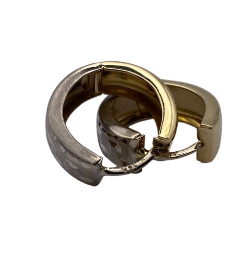 Gorgeous wide hoop earrings created in 14ct yellow & white gold with diamond cut designed through the front with matte & shiny finish - Earrings measure 17mm round x 5mm wide total size