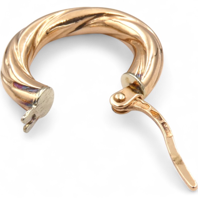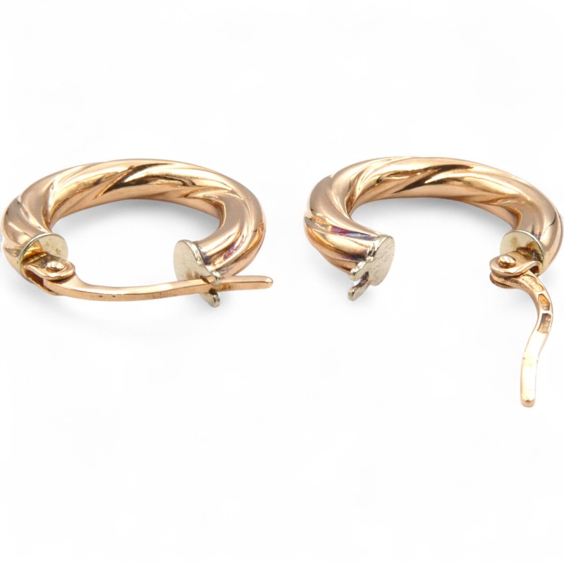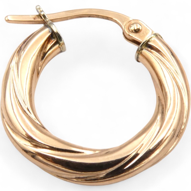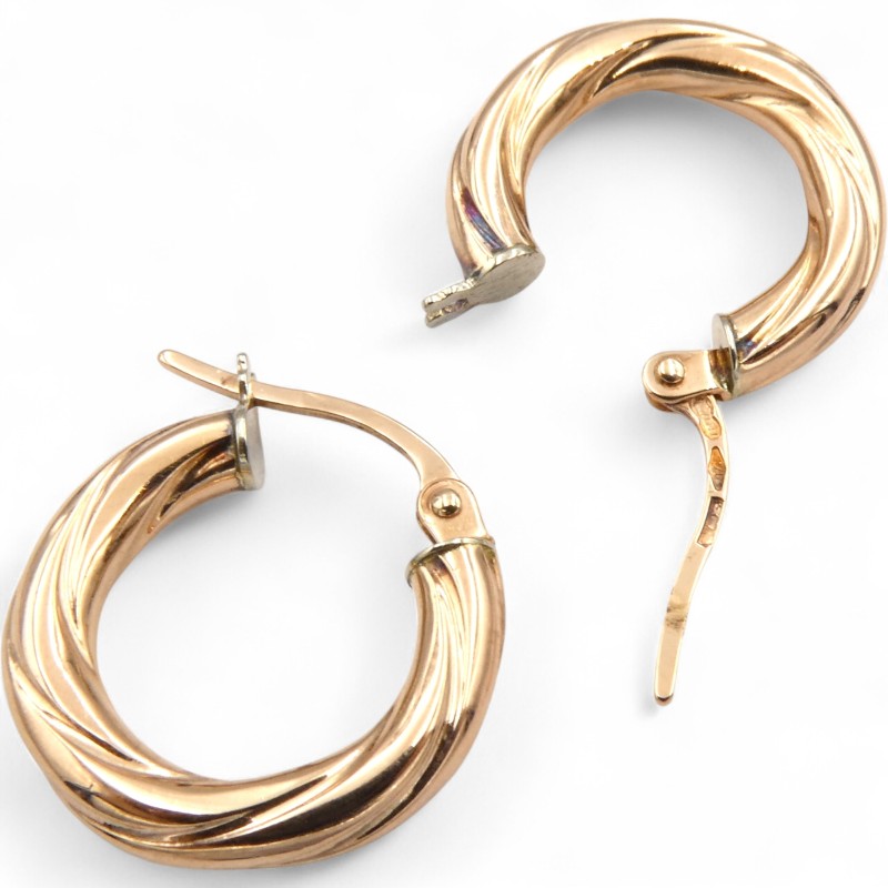 This beautiful pair of 9k rose gold earrings features a classic hoop design. Weighing 1.16g, these pierced earrings are hallmarked .375, indicating they are crafted from 9 karat rose gold. The earrings are engraved with the text "Unoarre 375".
