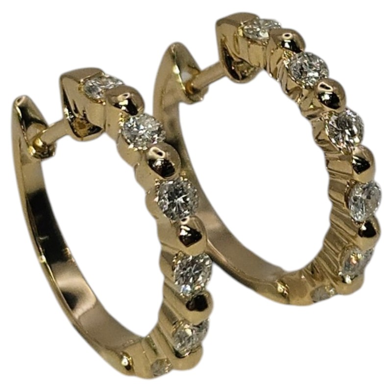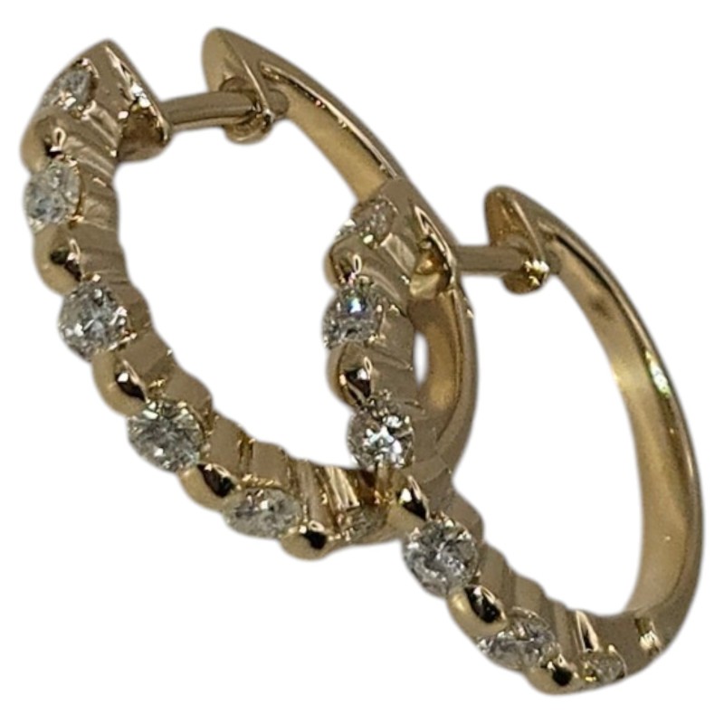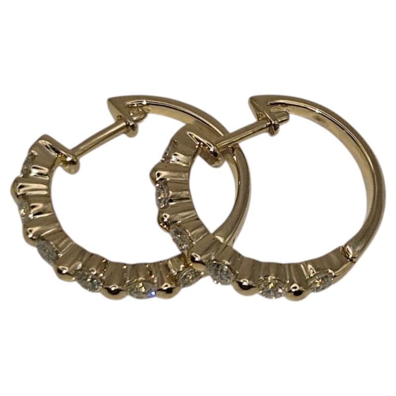 Timeless 18K yellow gold hoop earrings featuring a total diamond weight of 0.49ct. The diamonds are set in a classic claw setting, complementing the sleek hoop shape measuring 1.6cm in diameter. With an engraved detail of '750 0.49', these pierced earrings have a sophisticated, everyday elegance. All sizes and measurements are approximate.