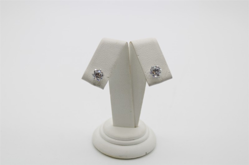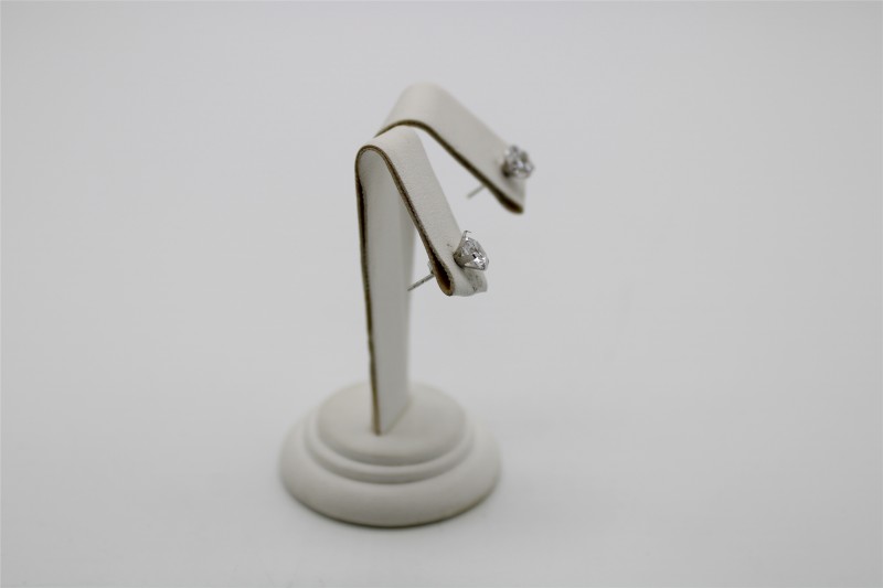Elegant 9 karat white gold stud earrings featuring two clear gemstones set in a classic claw setting. Designed with a simple, sophisticated stud silhouette, these versatile earrings are perfect for everyday wear. Measuring 0.93 grams, the earrings are a delicate yet eye-catching accessory to complement any look. All sizes and measurements are approximate.