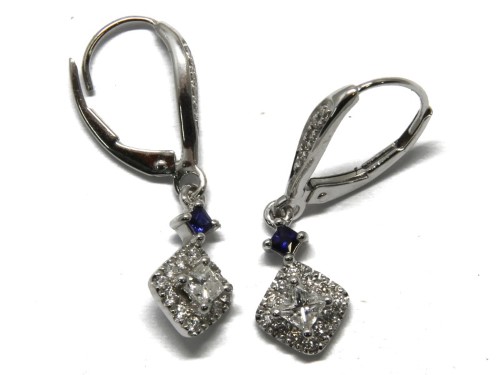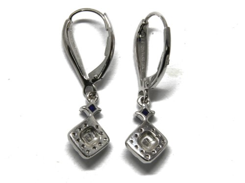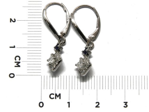 18CT WHITE GOLD DIAMOND AND NATURAL DARK BLUE SAPPHIRE DROP EARRINGS