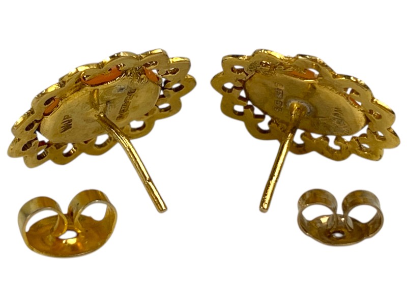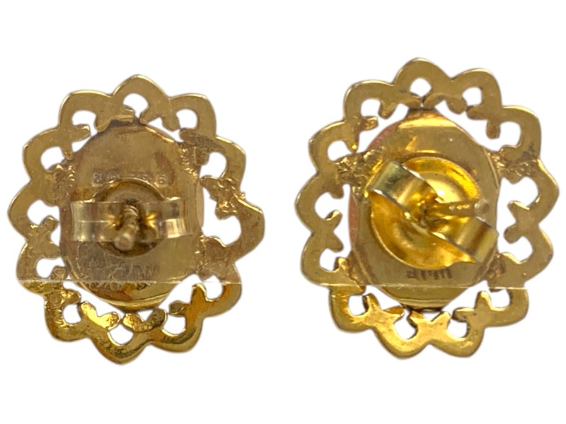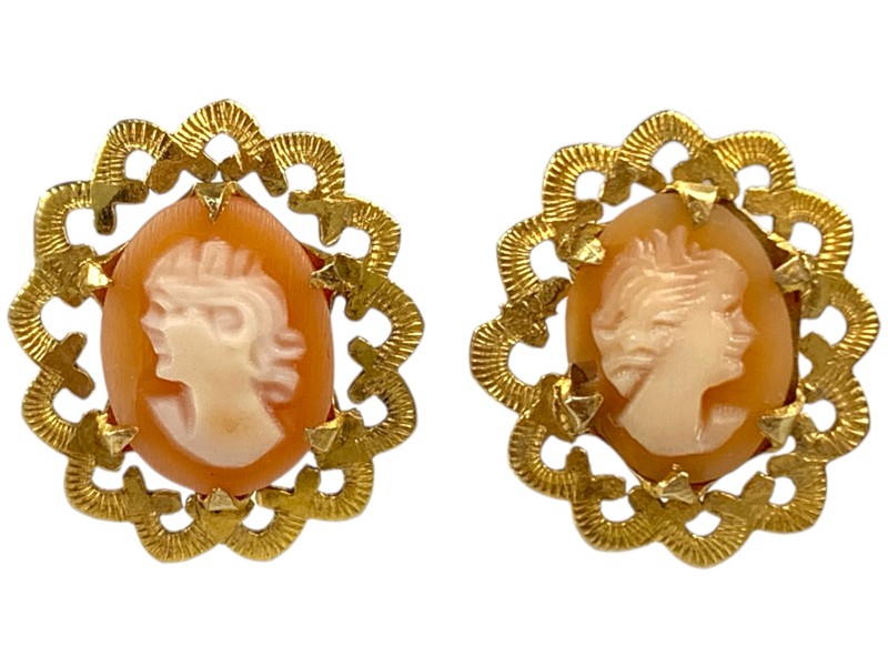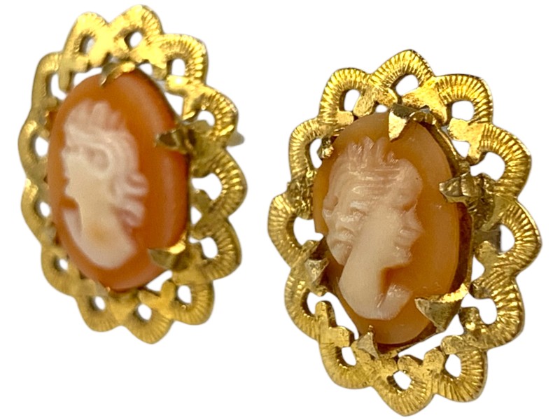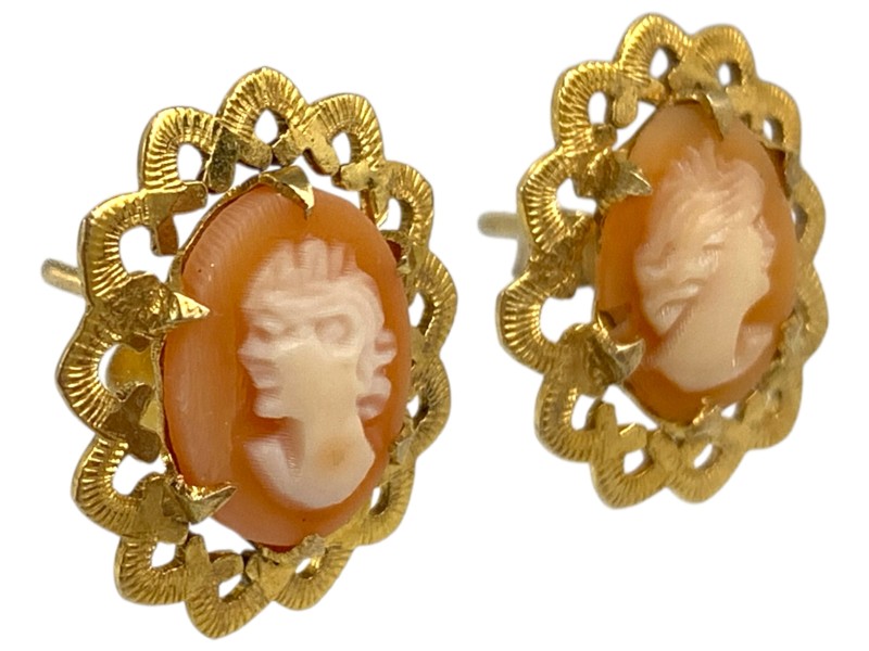 Description: 9CT YELLOW GOLD CLAW SET CAMEO STUDS