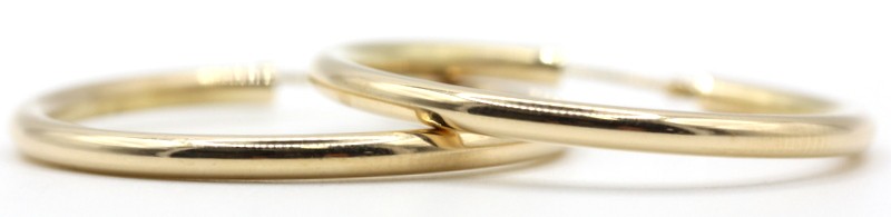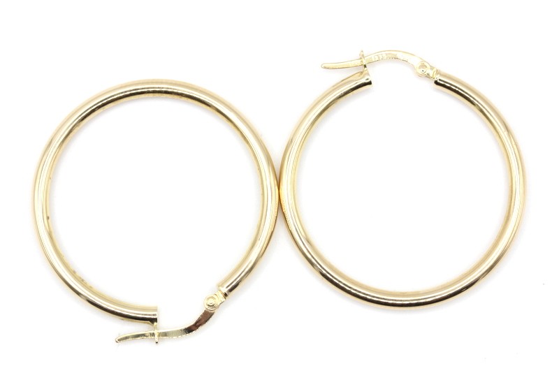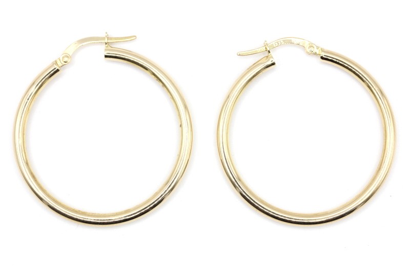 Timeless 9-karat yellow gold hoop earrings. The earrings feature a classic pierced design and are stamped with the 375 hallmark, indicating they are 9 karat gold. Weighing a substantial 1.61 grams, these elegant hoops are engraved with the mark "375 italy", providing a subtle yet charming touch. A versatile essential for any jewellery collection. All sizes and measurements are approximate.